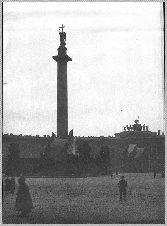 Однако если мы внимательно изучим фотографии площади Урицкого (так называлась Дворцовая площадь с 1918 по 1944 г.), то увидим, что ангел вполне благополучно оставался на своем месте и в 1918-ом...