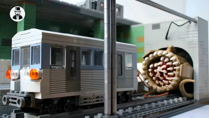 еcли Вы почитаете комментарии под видосом (честно скажу, такая ассоциация возникла и у меня, но еще до их чтения) - то увидите, что большинство подписоты прослеживает прямую аналогию со сценой из "Людей в Черном-2", где Агент Джей в метро бодался с космическим червем Джеффри (да, Джеффри выглядел несколько по-другому, но ты об этом вспомнишь, только если посмотришь скриншоты кино, а ты ленивый и не станешь этого делать:3)