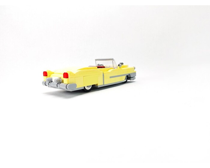 Модель, состоящая из 430 деталей, пытается максимально точно передать округлые и изогнутые линии. Автор задумал, что Эльдорадо может быть построен с мягким верхом или без него, в зависимости от хорошей погоды. Хотя с руками минифигуркам немного тесновато (типа руль мешает, ага), на переднем сиденье поместятся 2 минифигурки, а на заднем сиденье одна (без крыши). Используемые шины — это старые резиновые шины 70-х годов, но вы также можете использовать более современные узкие шины с белым ободом и серым осями на колпаках дисков, чтобы получить схожий внешний вид.