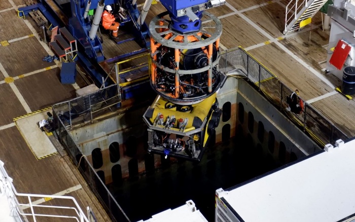 На борту у нас имеются различные штуки для конструирования всякого (обычные конструкции для закладки фундаментов, опор и т.д. как вы могли видеть на земле, даже цемент возим тоннами), а также подводные роботы. Например такие ROV (Remotely operated underwater vehicle - Телеуправляемый подводный аппарат). Обычно он даже не один, ибо конструкции под водой нужно ставить правильно в нужном положении и одному аппарату это не под силу.