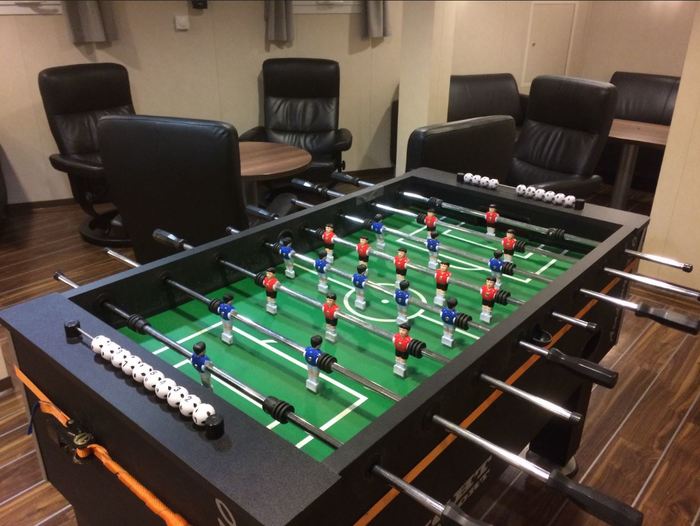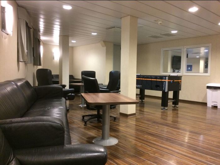 В каждой лаундж зоне есть PS4, XBox, или медиаприставка в которой 100500 фильмов на английском (даже вся "Игра Престолов" есть). Присутствует кикер, настольный теннис, дартс, куча настолок, книг и журналов. Есть Alias, Activity, Jenga, шахматы, ГО, шашки, монополия, карты, покер, Scrabble, 2 гитары (итальянская классика и эстрадная Ямаха). Только что был жаркий матч по кикеру между сборными Австралии и Польши. Польша проиграла: "О, курва!".