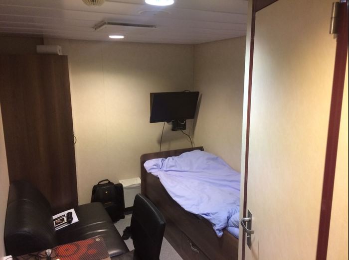 Например в отличии от наших судов, где стираешь и убираешь у себя сам, тут есть мой "личный" индус... Он каждый день убирает каюту и заправляет постель. о_0 У меня не нормированная вахта (Client Rep ин инглишь), иногда он заходит ко мне когда я сплю и сильно сильно, быстро, быстро извиняется. "I'm so sorry sorry sir!" Очень часто это повторяя. Мне его даже жалко становится...