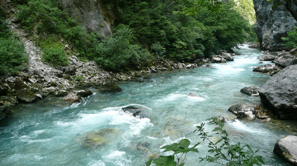 В Новом Афоне жили за 1700р/сутки, в 50 метрах от моря. Свой пляж, пусть и дикий, и чистая комната. Конечно за эти деньги можно найти что-то более приличное, но отсутствие удаленности от моря нас подкупило, в конце концов ради моря мы сюда и ехали. Грязи в море мы кстати не нашли, купаться было нормально. Конечно галечный пляж после песчаного не так привлекателен, да еще и дикий с валунами, но для не ленивых есть общественный пляж, где спуск в воду приятнее для ног.