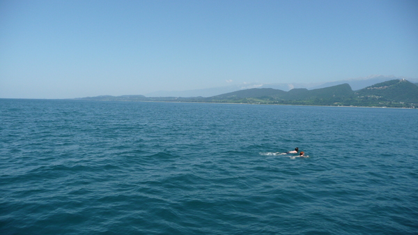 Морская прогулка удалась лишь со второй попытки. Первый раз пришли вечером, собралось всего человек пять. Вышел капитан, извинился, сказал что не получится поехать если так мало людей, попросил приходить на следующий день пораньше. Пообещал выпить с нами чачи, но об этом благополучно забыл, ну а мы напоминать не стали. В море вы вышли конечно не далеко, но достаточно. Говорят счастливцам удается увидеть дельфинов. Не знаю правда этот или нет, но нам не повезло, так что обошлись только купанием в открытом море.