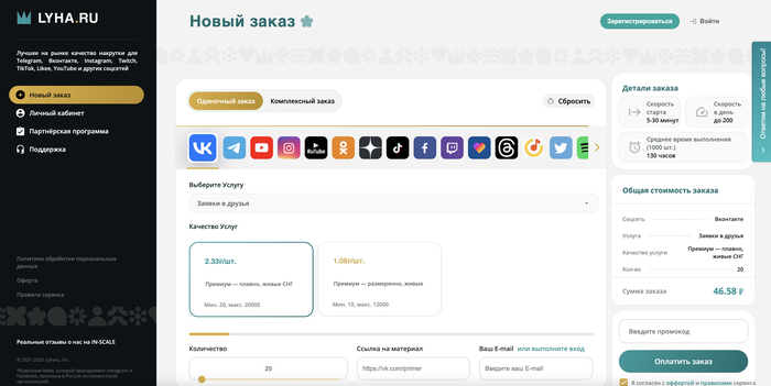 🥉 lyha.ru — онлайн-платформа, предоставляющая услуги по увеличению активности в социальных сетях, таких как ВКонтакте, Telegram, Instagram и других. Сервис предлагает накрутку лайков, подписчиков, просмотров и комментариев, обеспечивая быстрое и анонимное продвижение аккаунтов. Пользователи отмечают доступность и удобство использования платформы.