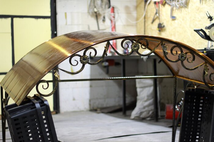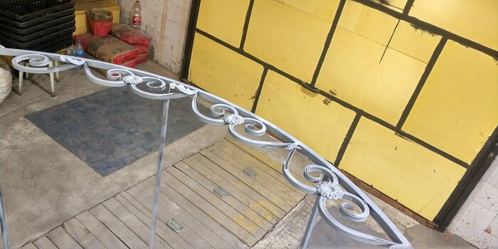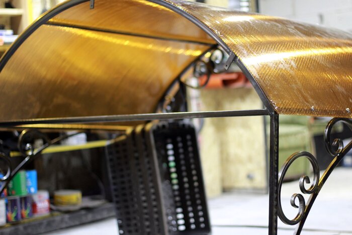 Затем приварил стойки из еще одной дуги, которую гнул уже сам для эксперимента. И долгое время у меня были кованые элементы - запятые, листики и цветочки. Сюда подошли как нельзя лучше!