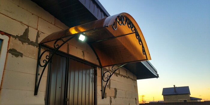 Вот так выглядит. Это со двора у меня. По центру перевесил прожектор. Козырек здесь пока какое-то время повесит. Когда дострою основное здание, тут будет общий навес на оба входа... Но это будет хз когда даже...