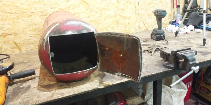 Почему я не вырезал по кругу? Чтобы сверху было ограничение для пламени, а снизу я вварил поддувало.