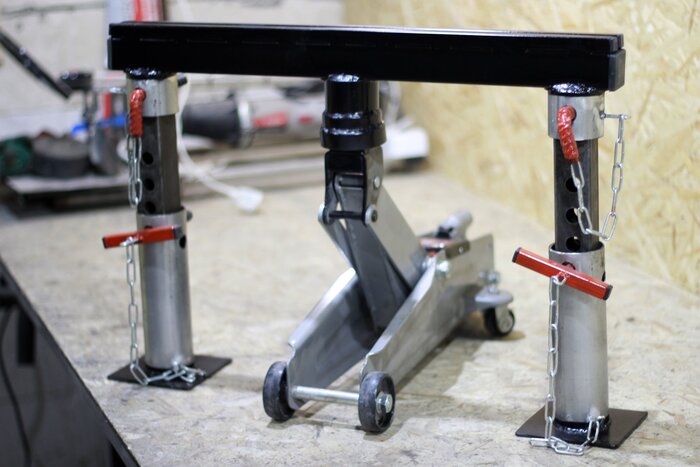 Всем привет, ребята! Решил сделать себе вот такие страховочные стойки. Раньше, когда был седан, мой подкатной домкрат успешно поднимал тачку, выхода штока хватало. На кроссовере ход подвески больше и поднять не получается. Еле-еле заднее колесо оторвать можно, а спереди нужно что-то под домкрат подставлять, чтобы произошло вывешивание.
