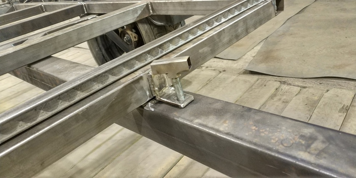 На верхний торец силовой балки приварены две профтрубы 15x15 и и между ними 10x10. Образовалась ложбинка, в которую садится шов кузова. Само собой, там проложена резиночка (на фото ее нет).