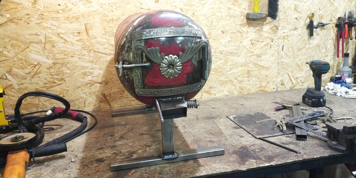 В качестве шибера на трубу - остаток круга, который вырезал из самого баллона. Немного поддочить и он отлично подходит. Вырезал сегмент примерно 1/8, чтобы тяга на минималке все равно была при закрытом состоянии.