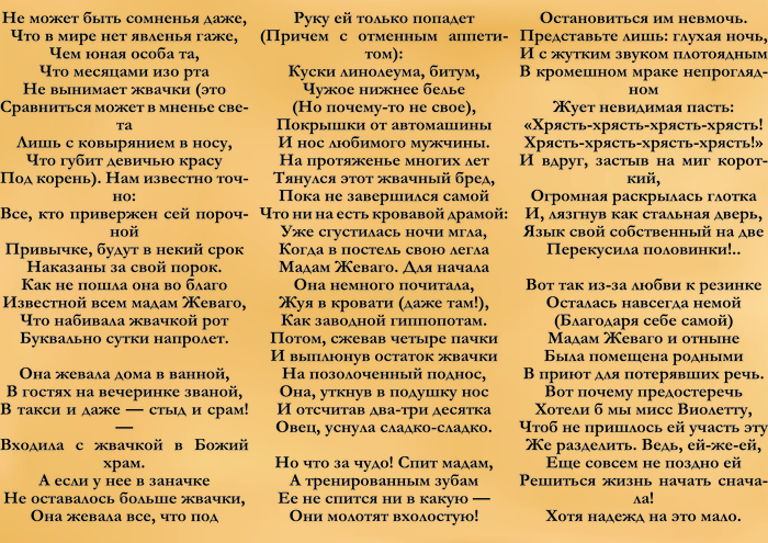 — Как он может вернуться целым и невредимымчерез пять минут из него сделают зефир в шоколаде!? — огрызнулась миссис Глуп.