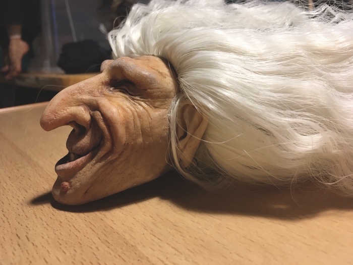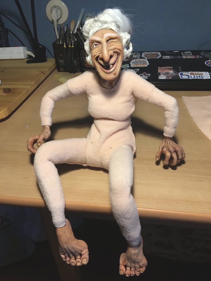 Голова, для, сбствнн, Бабы Яги, вылеплена вручную из полимерной глины телесного цвета, запечена в духовочке (на ужин) и расписана акриловыми красками.