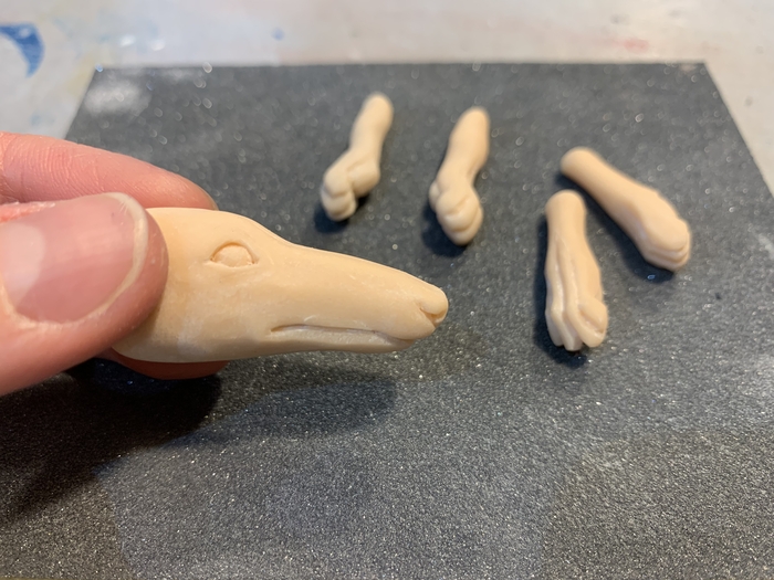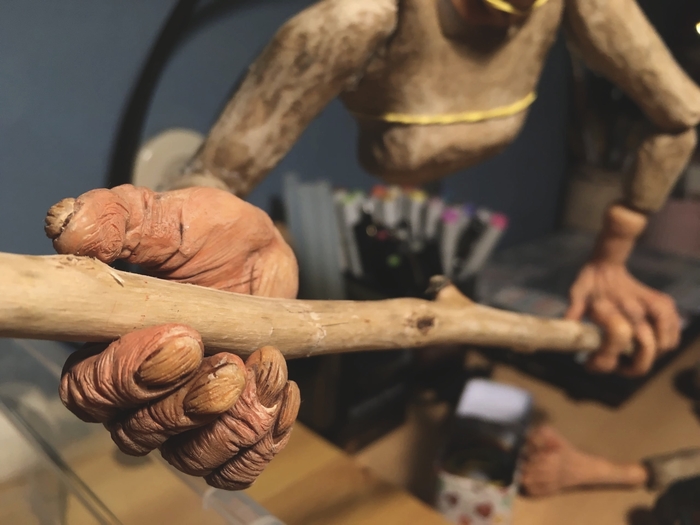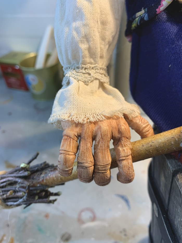 А это уже наполовину собранный конструктор и ручки, вылепленные и расписанные также, как и лицо.