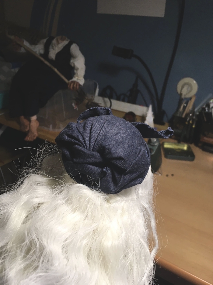 Волосы на трессах на этом этапе просто красиво приложены и примотаны тряпочкой.