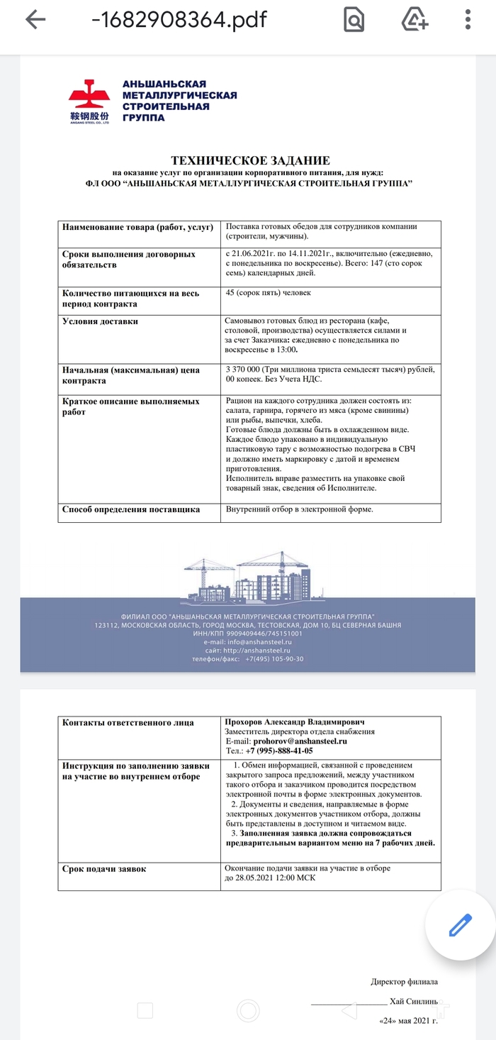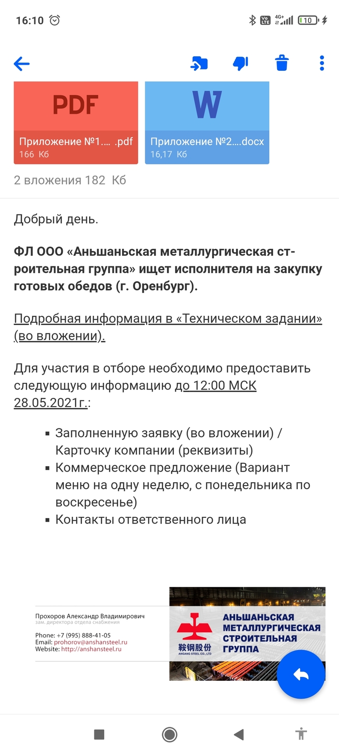 Я являюсь ИП и занимаюсь общепитом. Около месяца назад я получил письмо по электронной почте запрос от сотрудника отдела снабжения якобы иногородней компании (ООО "Ашаньская металлургическая строительная компания"), который представился Александром. В письме было сказано, что в моем городе они планируют работы на объекте, необходимо организовать питание для сотрудников и попросили выслать коммерческое предложение.