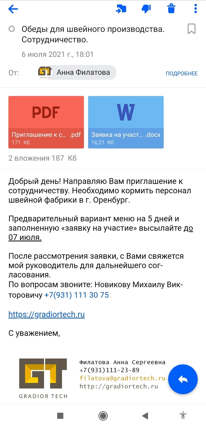 1.Мошенники под видом крупного заказчика рассылают запрос на сотрудничество (в основном общепит, но я видел комментарии, что эта схема была в другой отрасли), где прописывают очень выгодные условия на которых приятно и выгодно работать. Вы направляете коммерческое предложение или подтверждаете свою заинтересованность