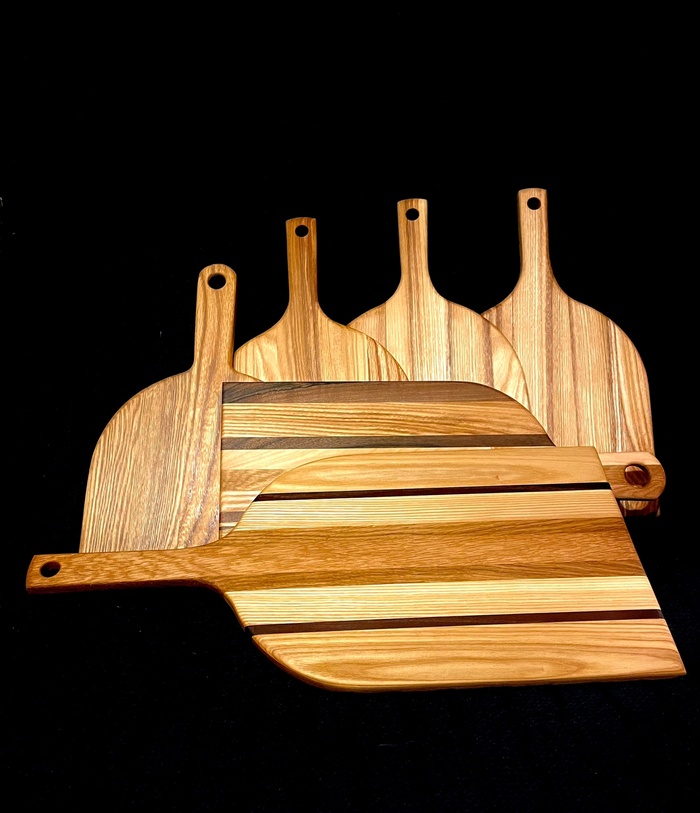 16 ProstoMongol Работа с деревом Разделочные доски по индивидуальному заказу 3 месяца назад Доски из ясеня и вставки клёна, прямоугольная доска 300х400х35 мм, круглая d-300 мм и толщиной 35 мм, на силиконовых ножках, подставка для досок. Пропитка минеральным маслом, постобработка крем-воском. Показать полностью 1 [моё] Мастерская Изделия из дерева Рукоделие без процесса Столярка Ясень Клен Разделочная доска Изготовление Работа с деревом 1 Ещё 0
