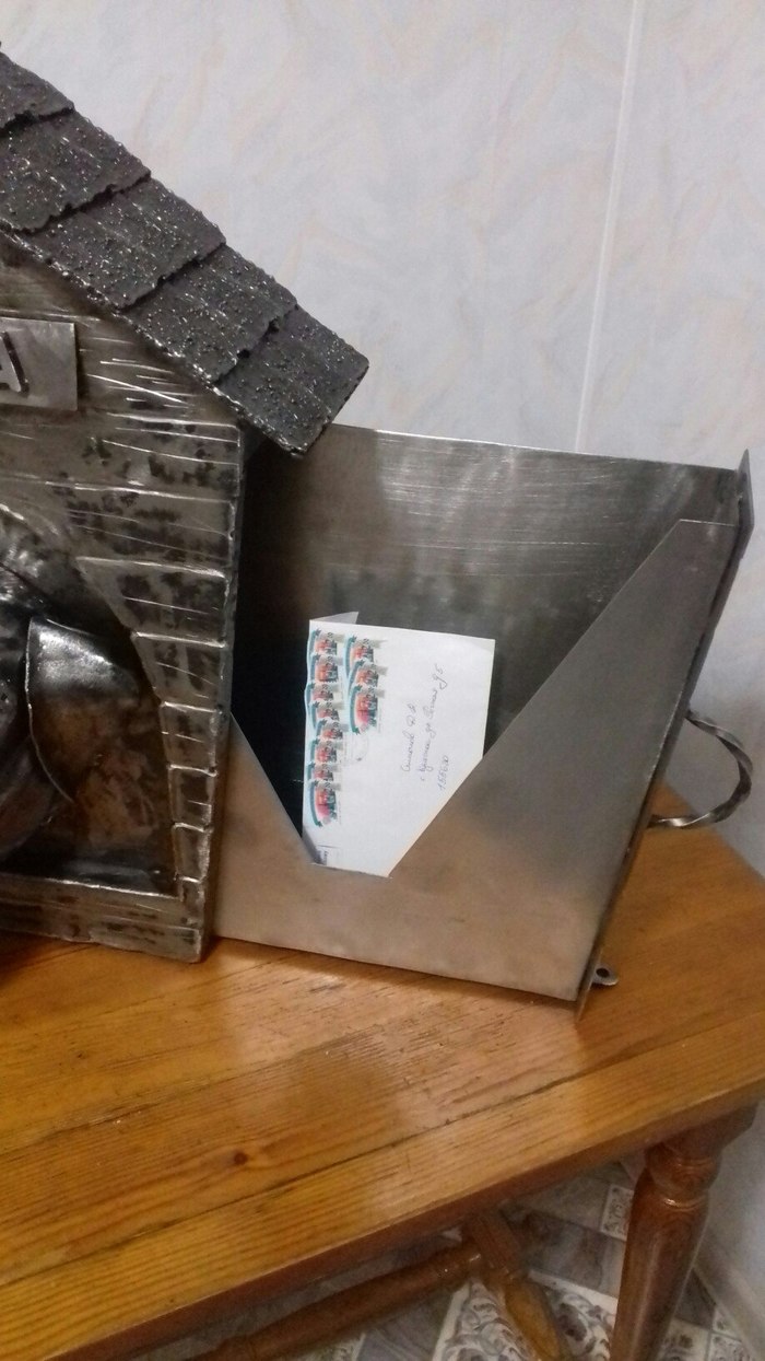Это почтовый ящик в виде будки с собакой, табличка с надписью "ПОЧТА" приподнимается к верху, и сразу за ней приемник писем.