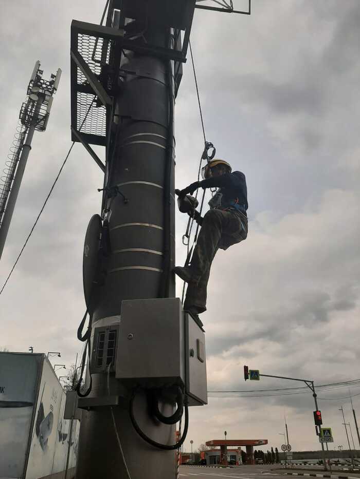 На днях в Туле КРАСИЛ столб металлический (собственно, там ОДН - опора двойного назначения. 30м, на ней оборудка оператора и разные городские лайтбоксы, фонарь, плюс линия электропередач на неё же закреплена городская).