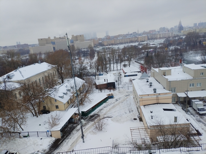 Вчера Москву накрыло ледяным дождём при - 3 градусах днем. Так себе погодка. Но, как известно, что нам снег, что нам зной, что нам дождик проливной ледяной! Работать надо. Вот и поехал. Первая АМС была скучной и неинтересной. А вот вторая. Ну, во-первых - это крыша ГКБ номер 1 им. Пирогова. Для тех, кто не из Москвы - Городская клиническая больница номер 1. Офигенная территория. Хрен проедёшь (кпп, шлагбаумы, все дела). Дождь ледяной.