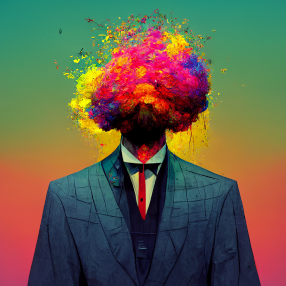 man in a suit and his head bursting with colours