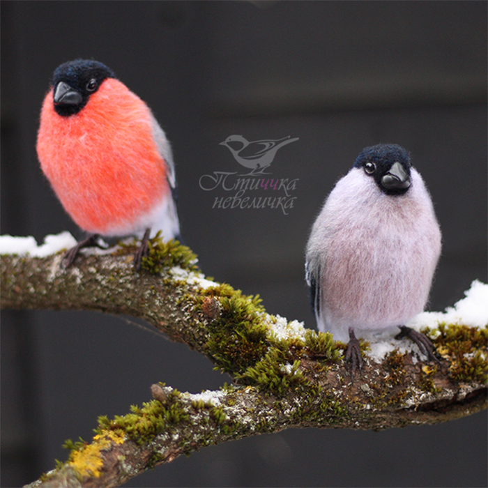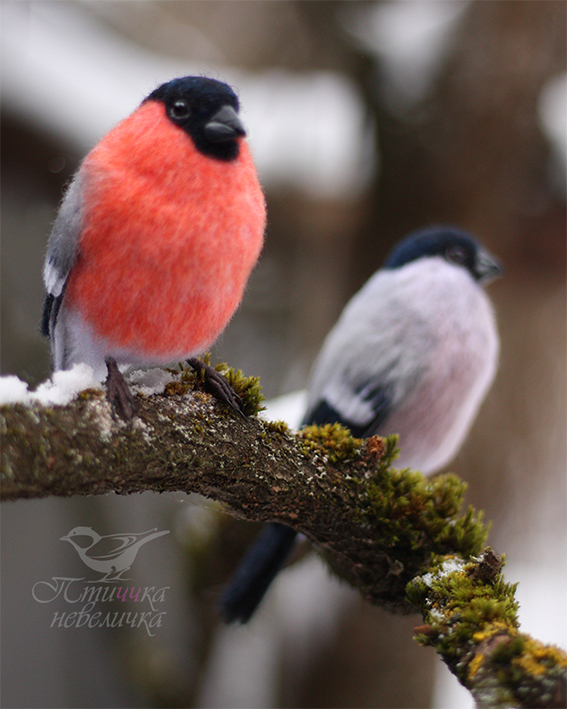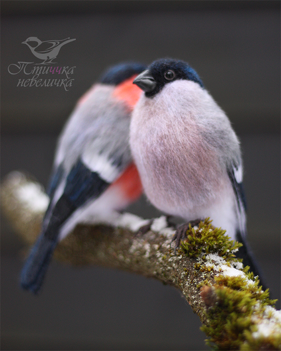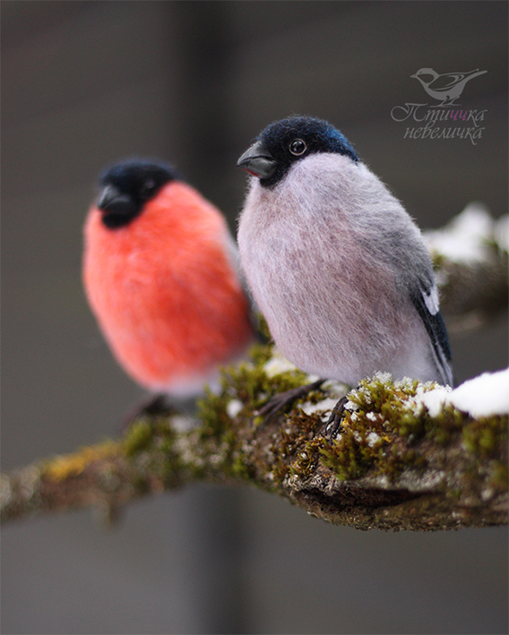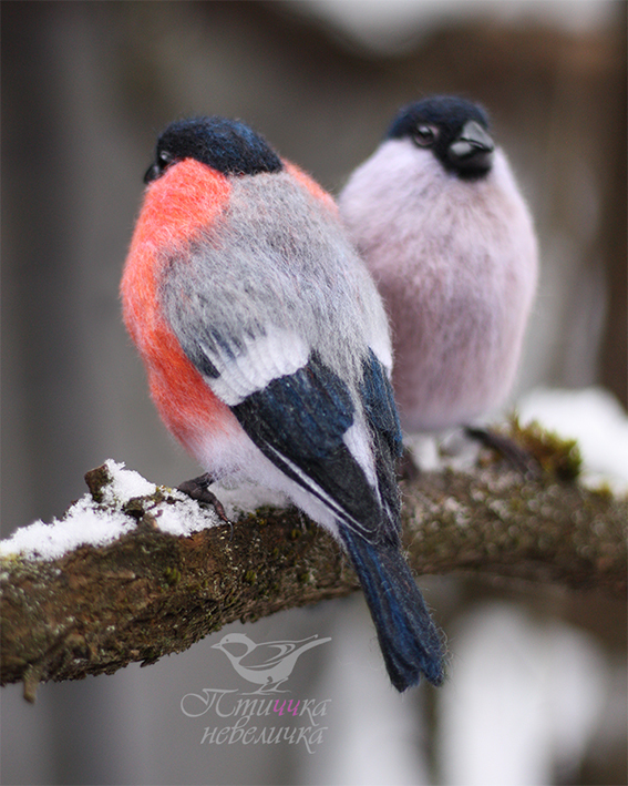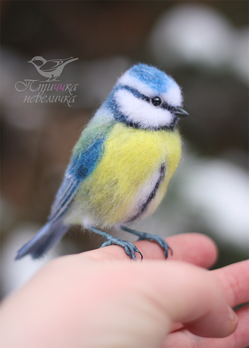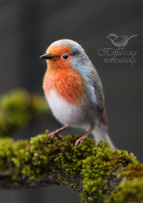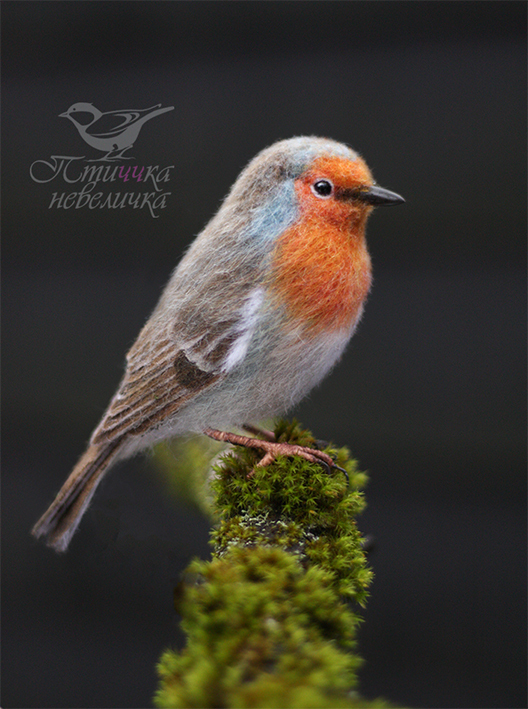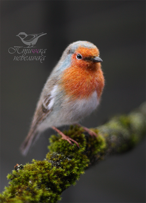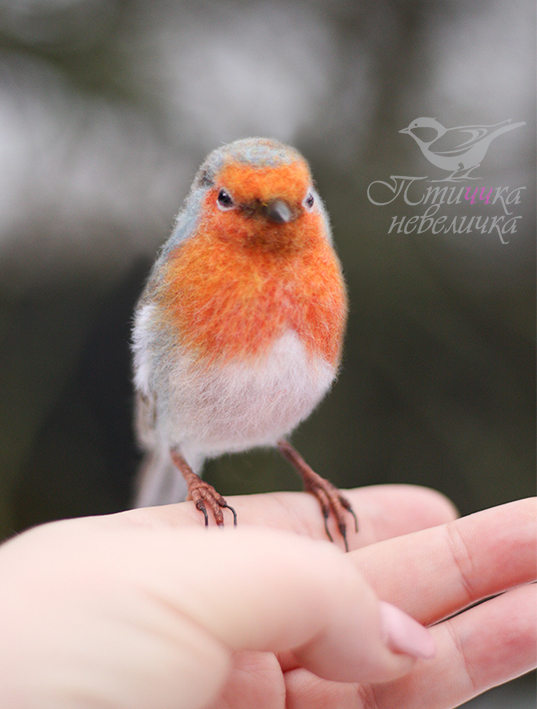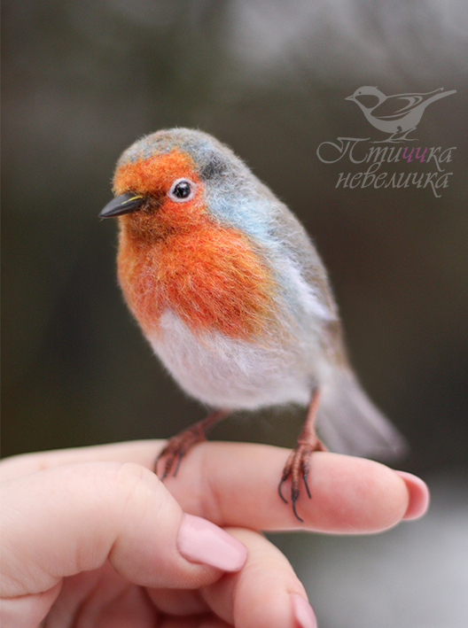 Что интересно: эти птички умеют очень забавно надуваться- хохлиться, из-за чего становятся похожи на шарики с клювиками! Но воплощать зарянку в шерсти, я предпочитаю всё- таки в более традиционной форме! ))