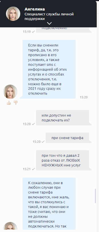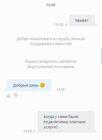 Зайдя в лк оператора с цифрой 2 на конце, увидел что подключены платные услуги???! В лк бот не давал мне ответ а предлагал задать ему вопрос который он хотел бы увидеть, наивный железяка) Заспамив этого терминатора с помощью ctrl+c ctrl+v, он позвал оператора