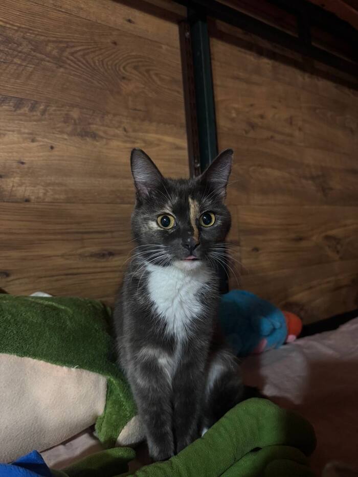 Кошка тихая, спокойная, стала давать себя погладить . Стерилизована. К лоточку с наполнителем ходит.