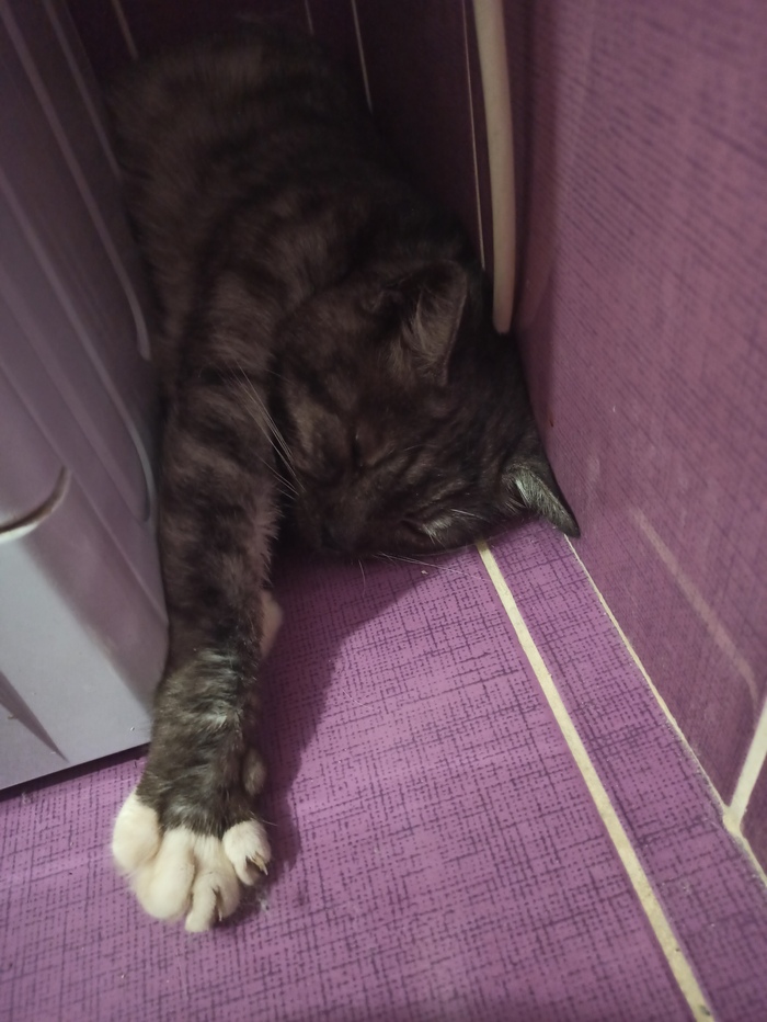 Спасен с улицы . Неделю плакал и дворовые кошки не пускали в подвал.