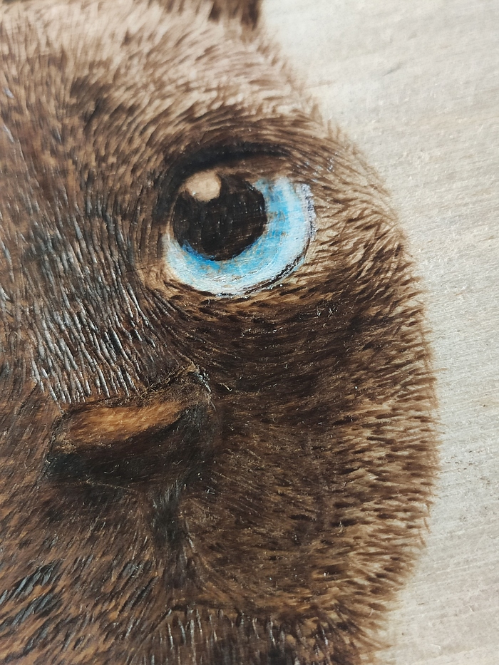 Решил интенсивнее затемнить мордочку и добавил цвет на глазах