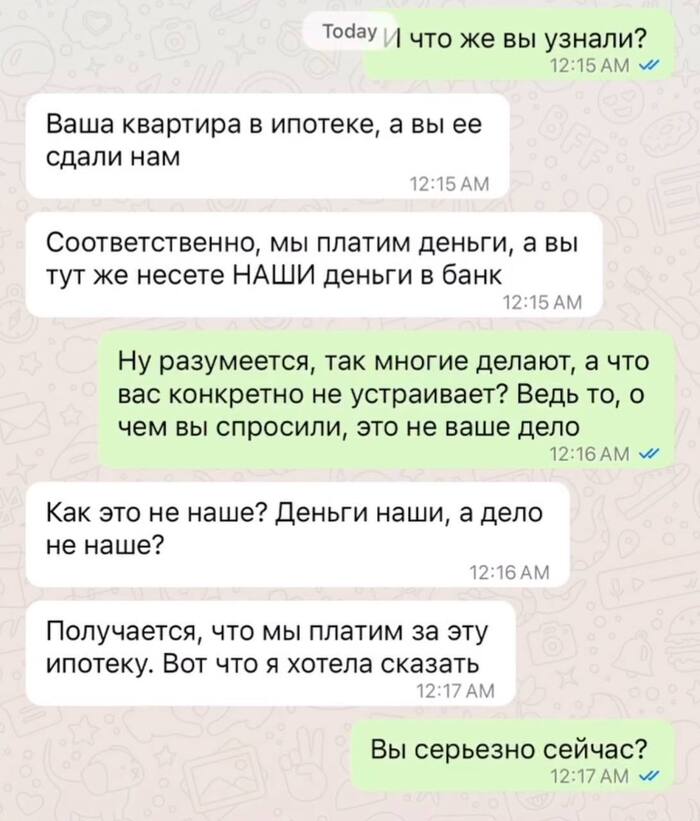 Логика убила — съемщики считают, что они платят именно за ипотеку, поэтому и квартира должна принадлежать им