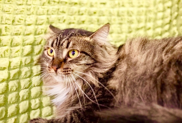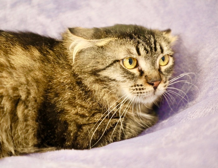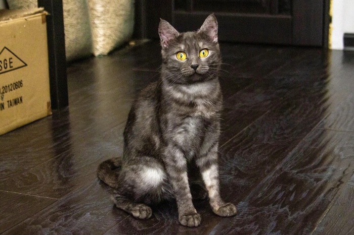 Она совсем понемногу отходит, но процесс очень медленный. Ей нужно время, чтобы забыть свои беды... Джулии очень нужен заботливый хозяин, который поймет ее и не будет форсировать отношения, научит кошечку снова доверять. Услышит ее беззвучный плач. Хозяин, который будет ее любить даже такой, поможет Джулии забыть все плохое, что было в ее маленькой кошачьей жизни.