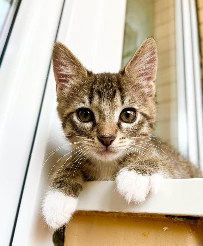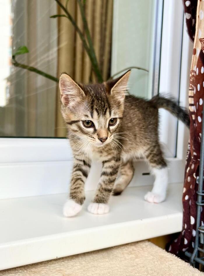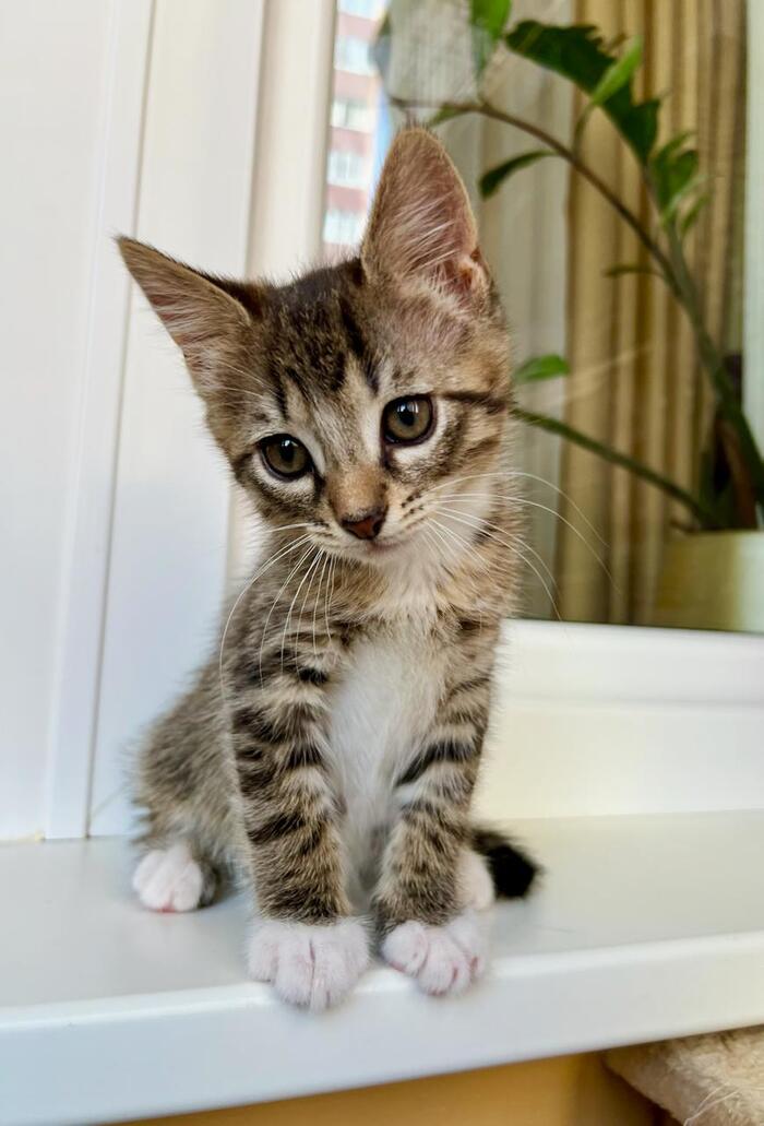 Этому сладкому очаровательном существу всего 3,5 месяца. "Матросский" полосатый окрас с белой манишкой - это классика! Маффин людей обожает, с удовольствием общается, любит ласку и внимание. Активен, подвижен, любопытен и бодр. При этом не навязчив. В доме будет совершенно беспроблемный умничка, чистоплотный и аккуратный. Словом – классный идеальный котёнок без недостатков! Настоящий домашний антистресс, обладает огромной позитивной энергетикой, избавит от усталости и плохого настроения. Абсолютно здоров, имеются прививки, лоточек знает на отлично. Отдается бесплатно, в дар, только заботливым и ответственным людям.