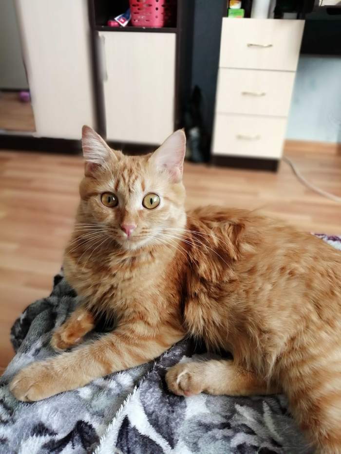 Коротко о Тосе: Стерилизованная, была сделана прививка от глистов. Активная, любит исследовать что-либо новое, даже если оно не вкусное. Любит лежат на животе человека. Возраст около 1,5 года.