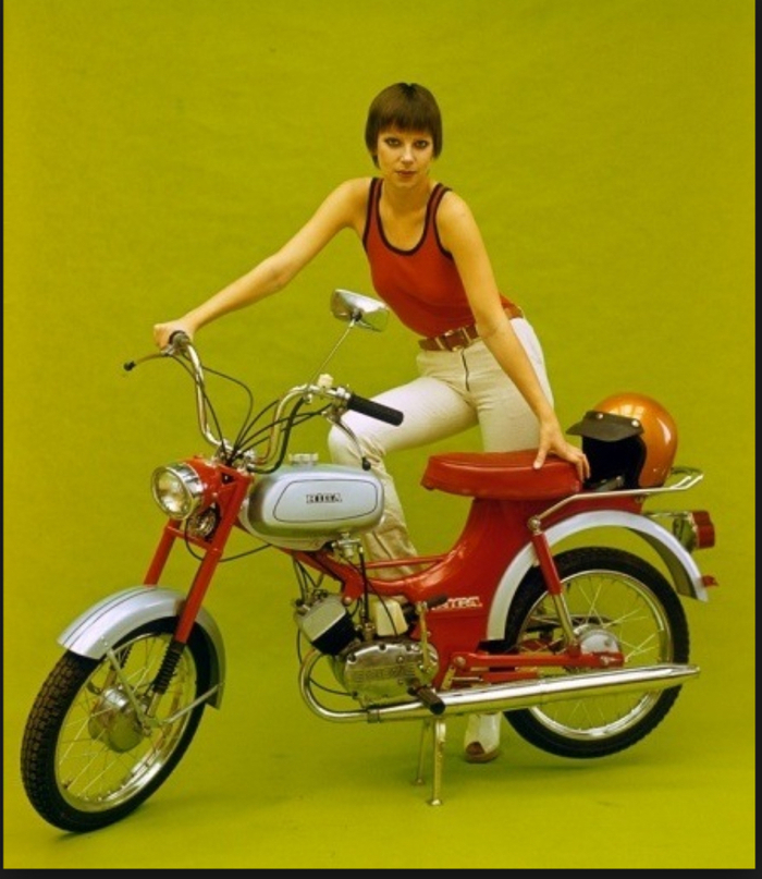 Мопед "Рига 12/16". Легкий мопед выпускался с 1974г. Вероятно, продажи планировалось увеличить при помощи таких вот плакатов.