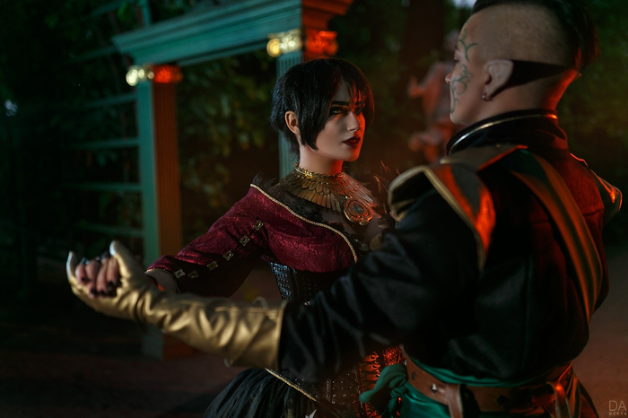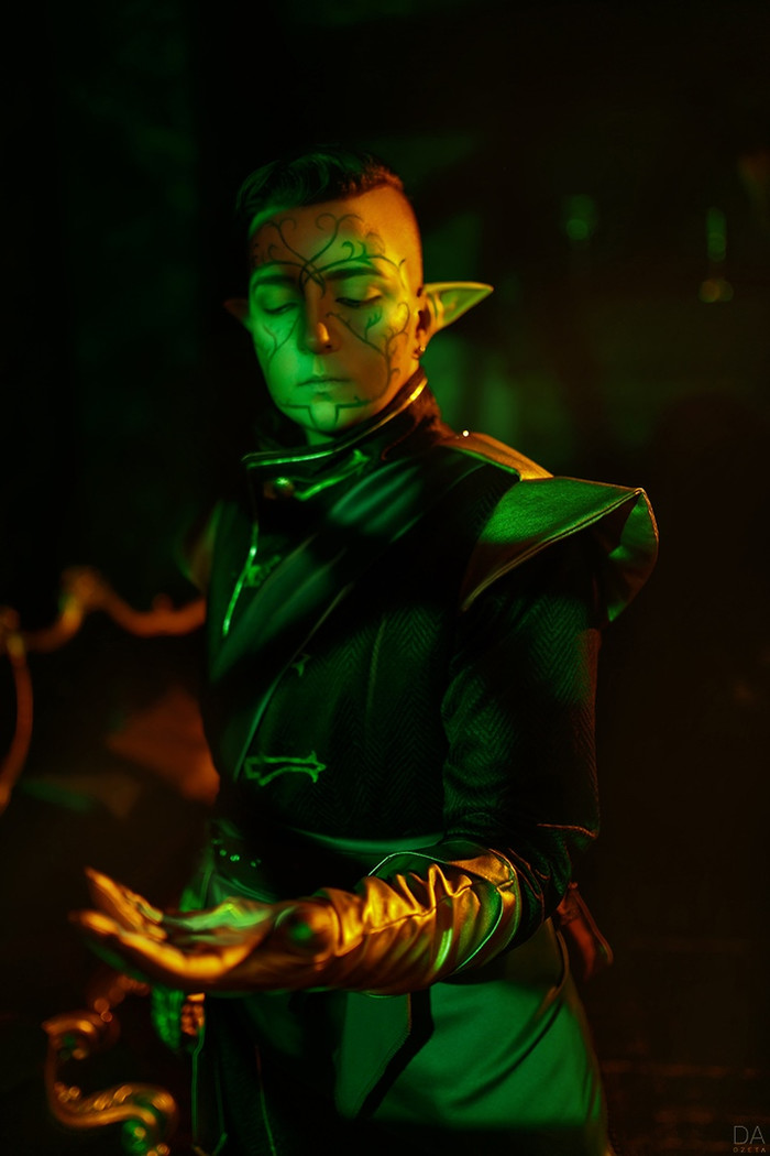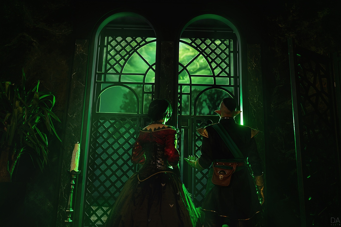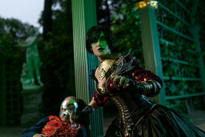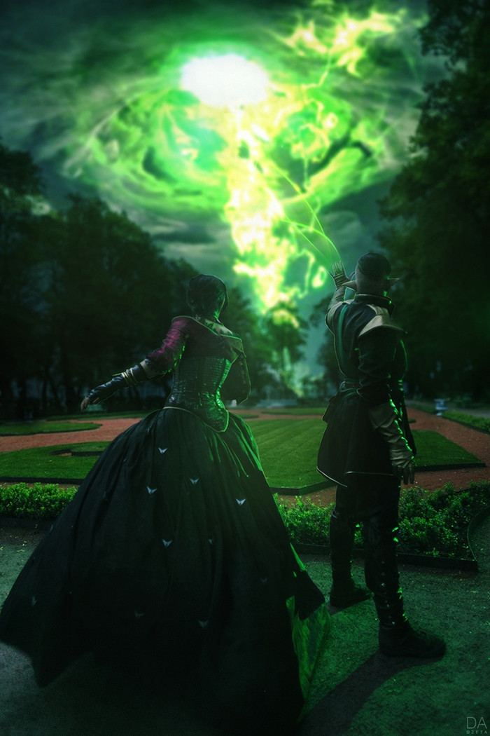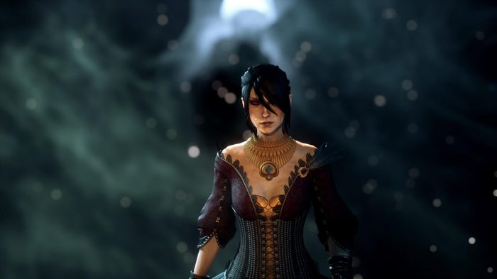 Персонажи: Инквизитор (Эльф, протагонист игрока, кастомный), Морриган, безымянный эльф (NPC), безымянный официант (NPC).