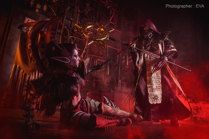 Персонажи: Темный Эльдар из культа Ведьм, Ересиарх (ориджинал, прямого прототипа во вселенной не имеет; противоположность итератору Экклезиархии - проповеднику Имперских Истин ).