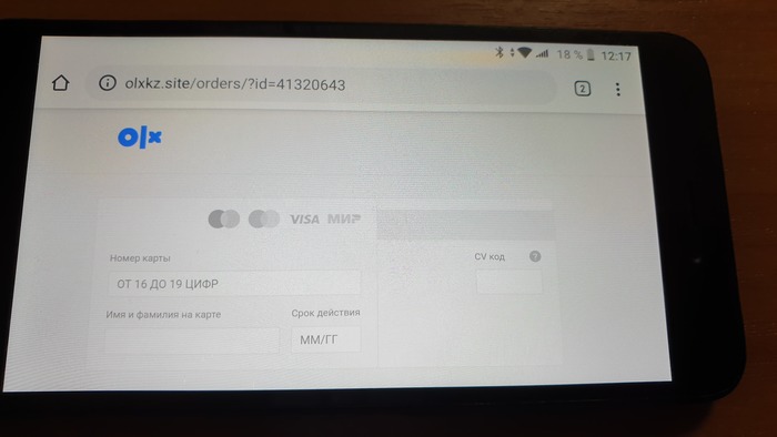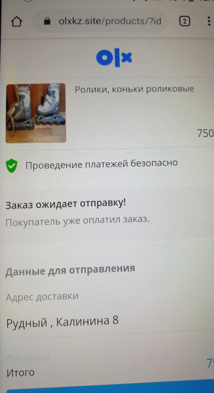 Продолжили утром, то что мошенники, стало понятно когда предложили отправить за 1000 км. Решил посмотреть что получится, открыл ссылку с левым сайтом, olxkz.site