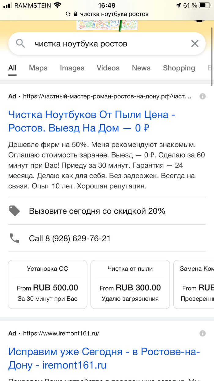 Вызвал сегодня компьютерного мастера Романа по ссылке в рекламе гугла. С сайте «частный компьютерный мастер Роман Ростов».