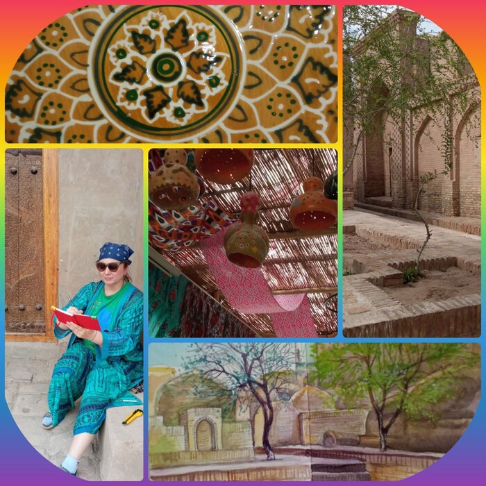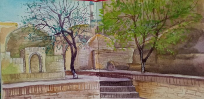 Мы побывали в Хиве , там я сделала свой первый скетч, познакомившись при этом с песчаной бурей 🙂, безумно красивыми базарами и старинными улочками внутри крепости который уже больше 2500 лет.