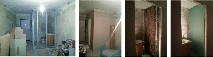 1. Заказал сантехнику подключить унитаз и воду. Теперь можно было приступать к ремонту на полную. Сделал стены санузла с двойным гипсокартоном и звукоизоляцией.