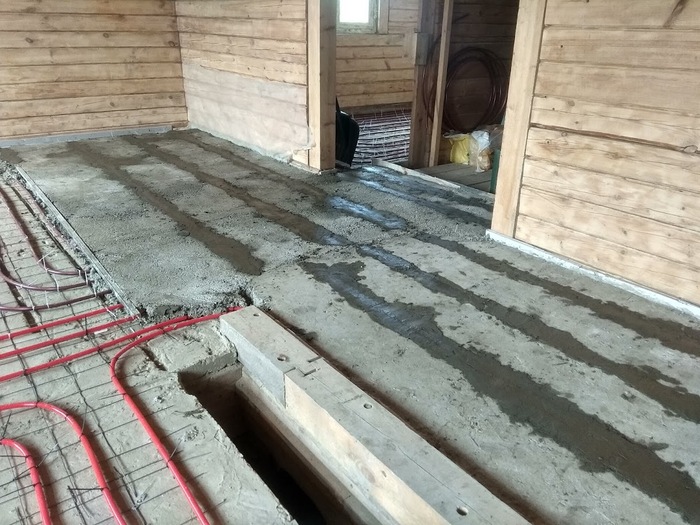 Вообще только фраза "бетонный пол по деревянным лагам" способна вызвать мощное бурление в комментах. О том что лаги не выдержат и пол треснет. По итогу треснул только пукан у теоретических нострадамусов.
