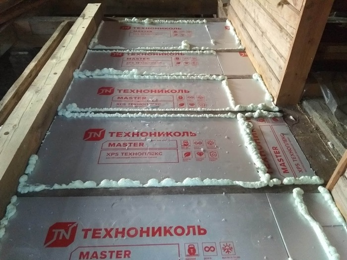 В итоге первый отопительный сезон потолок был утеплен 150 мм, во второй сезон уже от 250 до 300 мм навалено было и сверху так же накрыто ветрозащитой - чисто чтобы от стекловаты не чесаться возле дома
