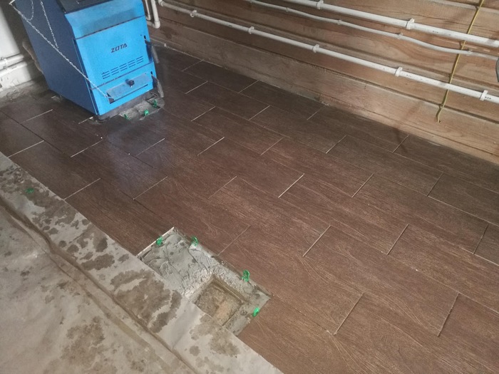 Но такая красота - она не для постоянной эксплуатации - где то год мы жили с таким полом а потом в прихожей, санузле и котельной выложили керамогранитом