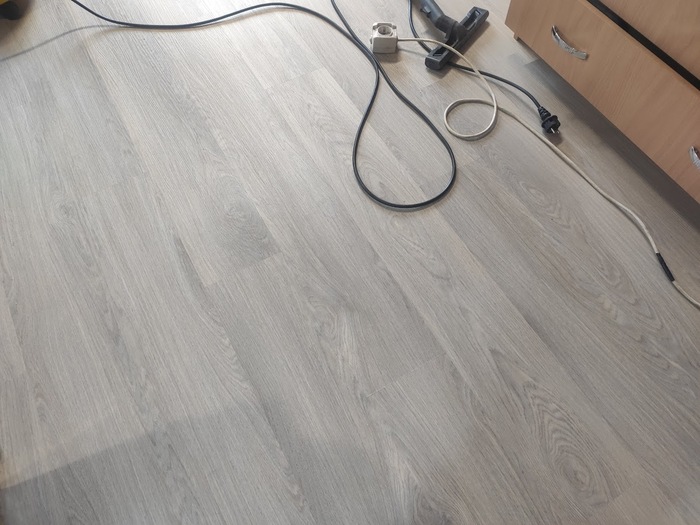 Но выход есть - SPC ламинат (Stone Plastic Composite). В строительном магазине я выцыганил себе образцы, положил на пол, утром сравнил температуру голого пола и пролежавших всю ночь образцов и побежал в магазин покупать партию на всю площадь.