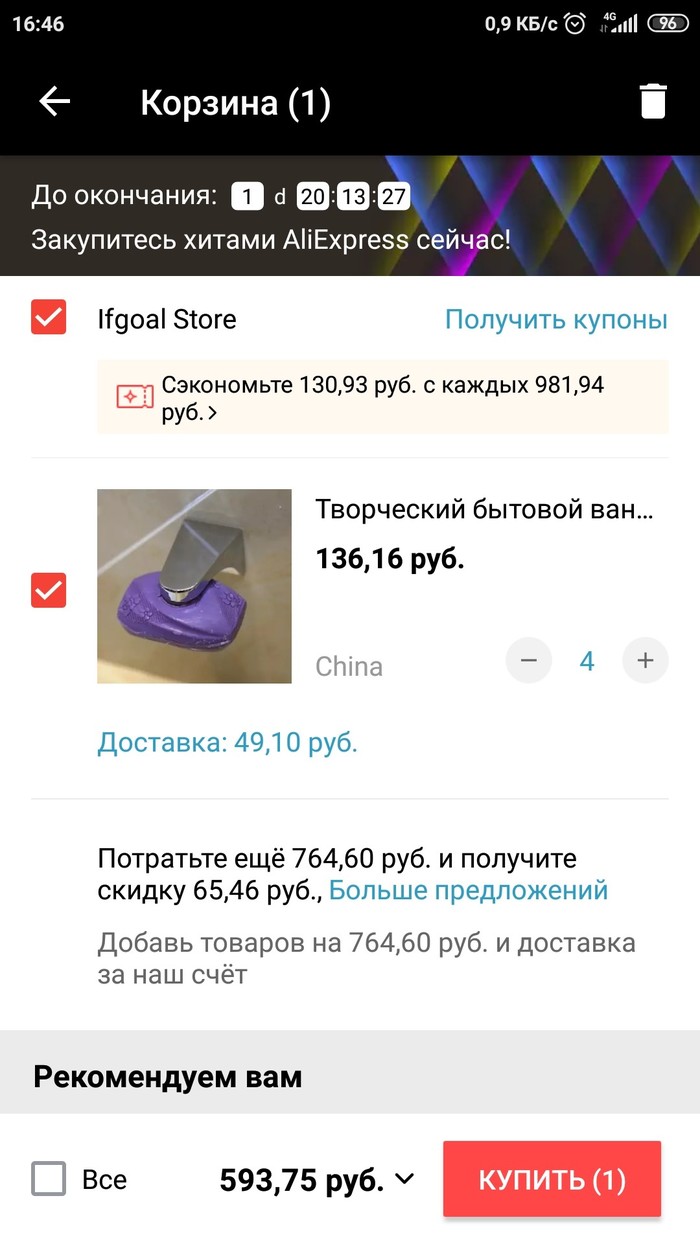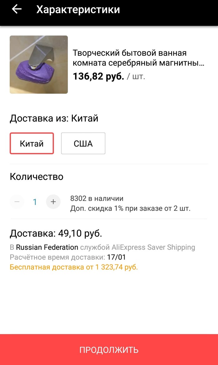 Сегодня общаясь с друзьями о покупках на Али, я им рассказал что можно экономить на доставке заказывая несколько шт. Одного товара с платной доставкой. Я был удивлен, что они этого не знают. Например при покупке магнитной мыльницы, цена товара 136,16р. И доставка 49,10р. (Может кому будет полезным)