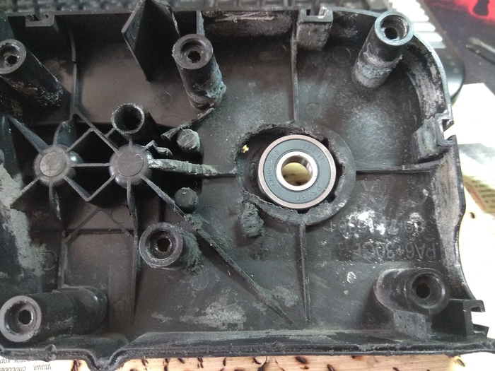 Заклинило подшипник и разбило посадочное место, восстановил содой и клей Cosmofen, может кому пригодится, после ремонта пользуюсь две недели пока все норм
