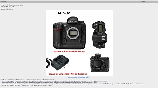 В украденной сумке Наташи находилась камера Nikon D3 – в то время довольно редкая в Екатеринбурге – и несколько объективов, в том числе экзотических. «Таких «Никонов» в городе были единицы, и мы внимательно следили за объявлениями о продаже и новой техникой у других фотографов, ожидая, что украденный фотоаппарат где-нибудь всплывет», - говорит Сергей. Встречая объявления о продаже техники, Сергей ехал к продавцу, встречался с ним, проверял серийные номера и, удостоверившись, что камера другая, вежливо отказывался от покупки.
