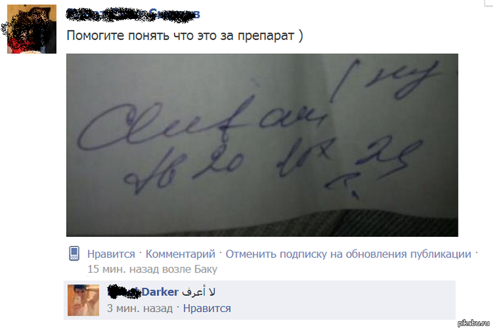 14 Ra5ta Помог 12 лет назад В группе попросили помочь распознать название препарата который выписал врач. Помог [моё] Помощь Врачи Facebook